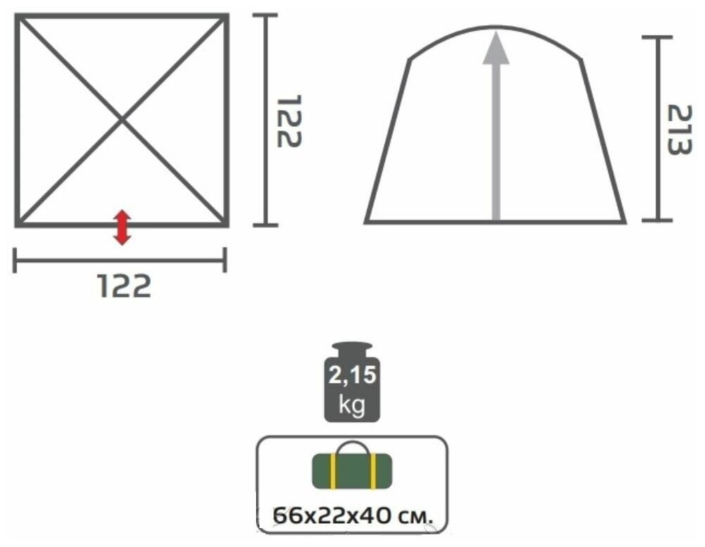 | Плюсы: | Окошки все с сетками, компактный в сложенном виде, сумочка с ручками |