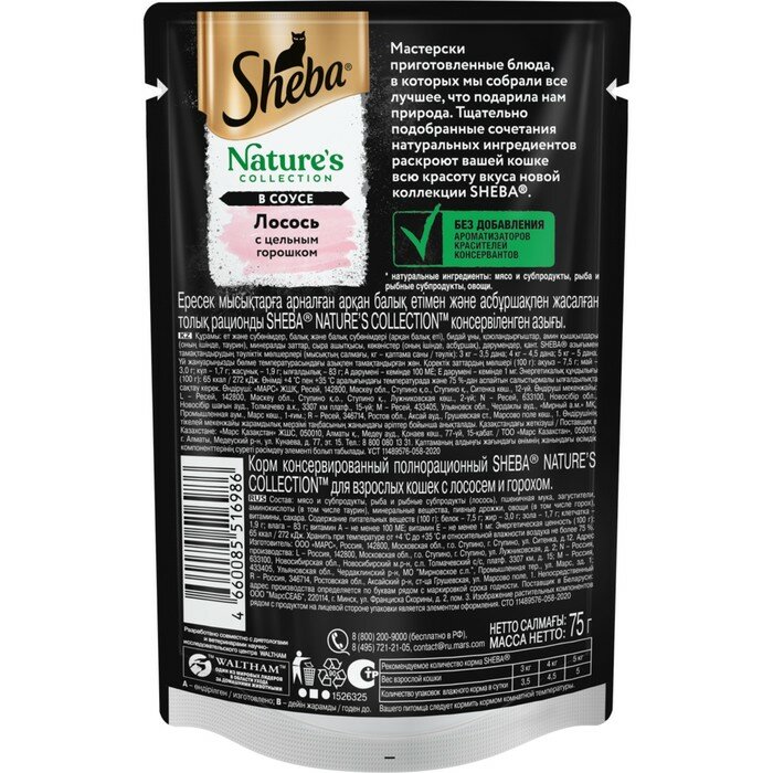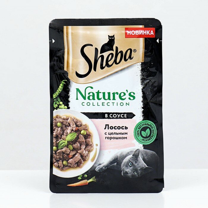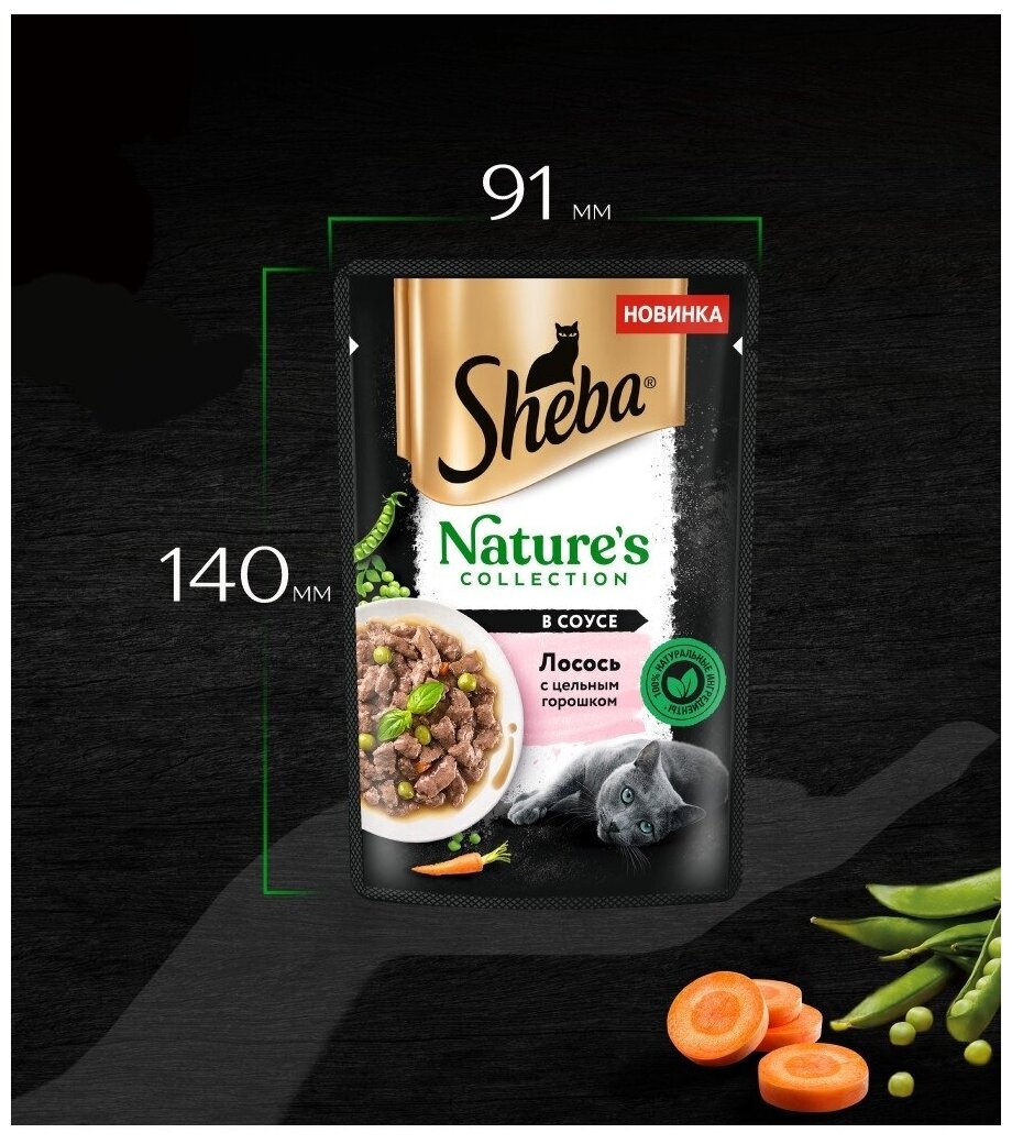 Шеба 10246555 Natures пауч для кошек Лосось с цельным горошком в соусе 75г интересное: