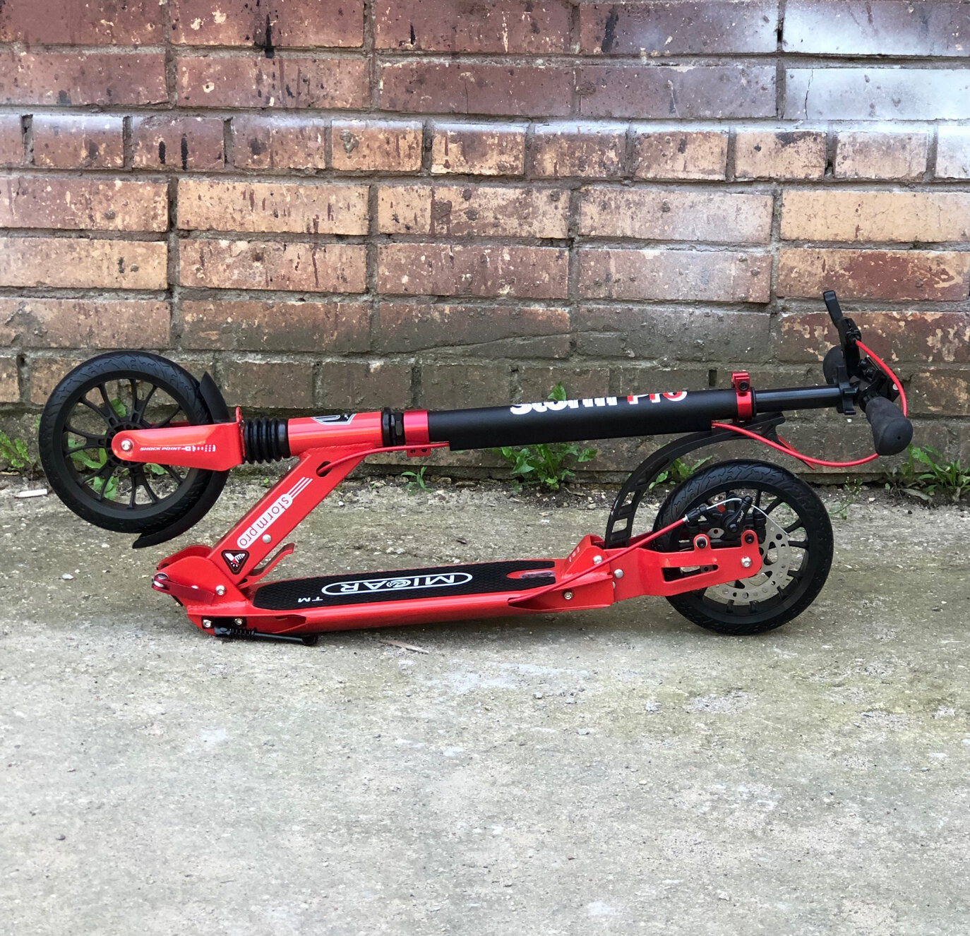 Двухколёсный самокат Micar Storm Pro Red с ручным дисковым тормозом и амортизаторами