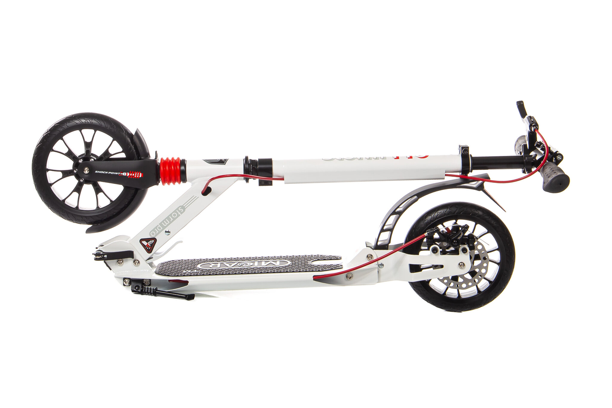 Самокат двухколесный MICAR Storm Pro c колёсами 200 мм, складной с амортизаторами и ручным дисковым тормозом белый