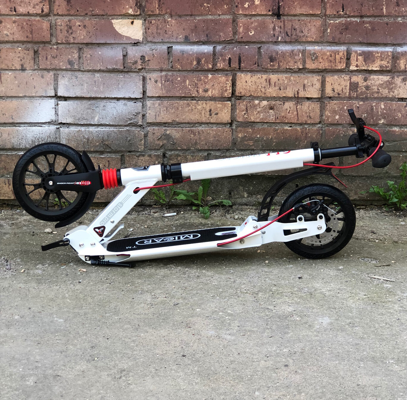 MICAR Складной двухколёсный самокат Micar Storm Pro 200 мм с двумя амортизаторами и ручным дисковым тормозом, белый