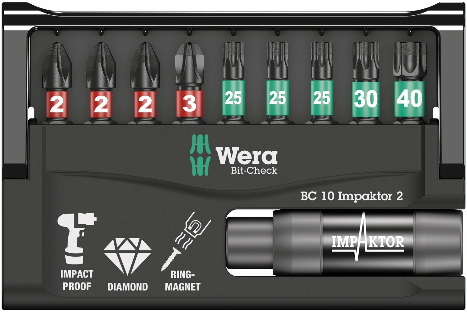 Bit-Check 10 Impaktor 2 набор бит ударных с битодержателем, алмаз, 10 пр., 1/4" C6.3 WERA WE-057682
