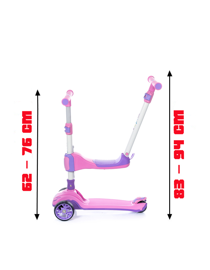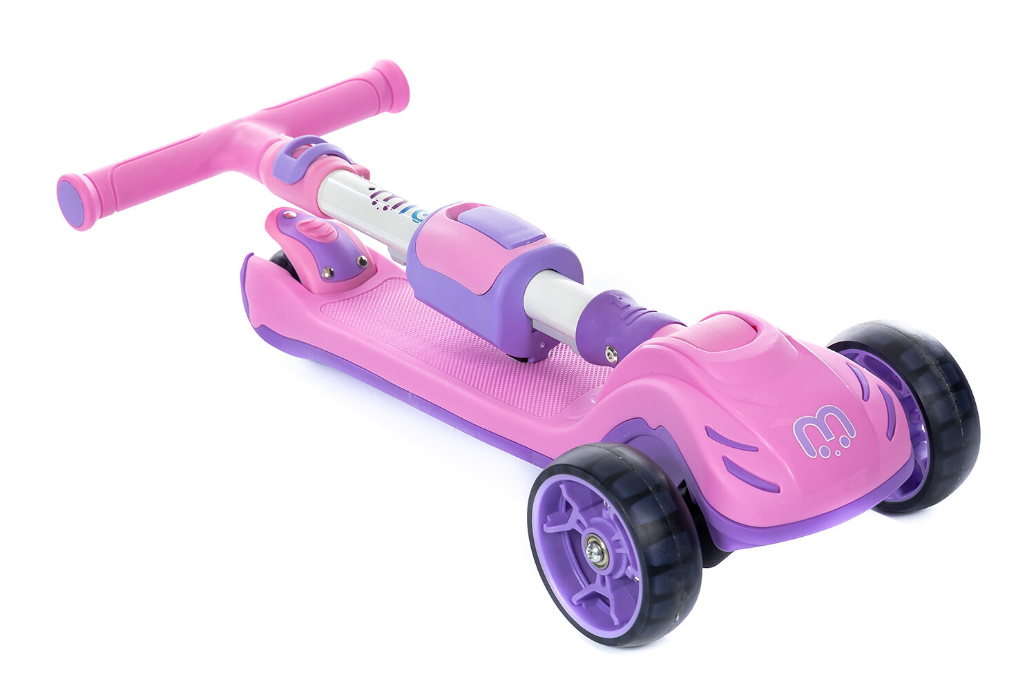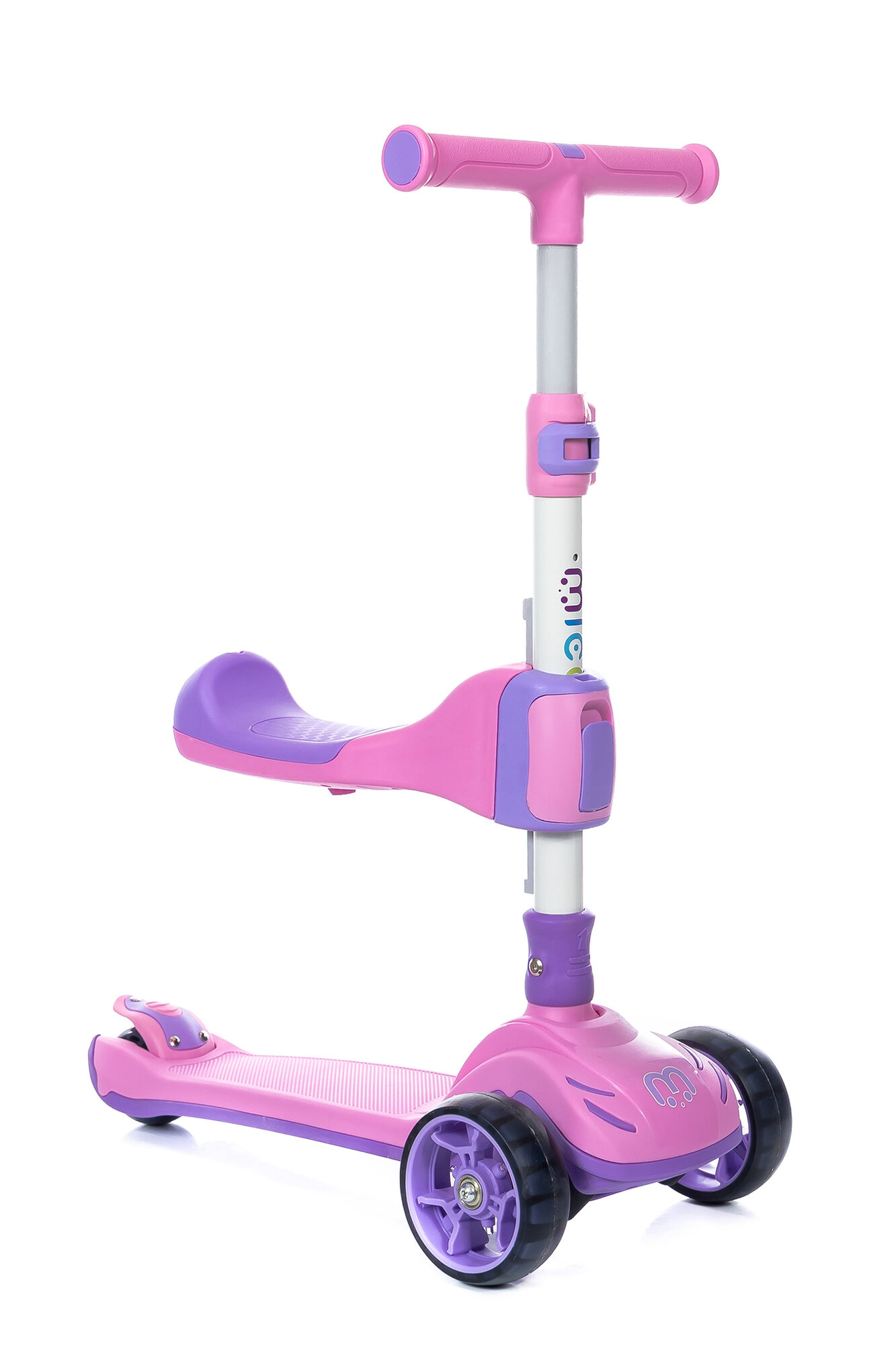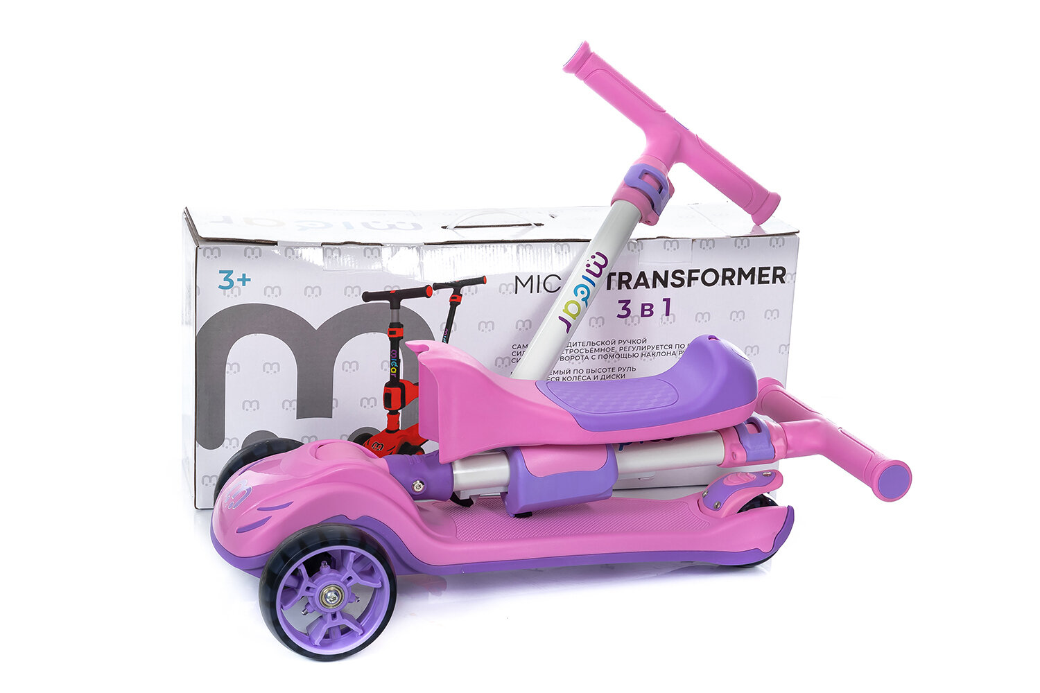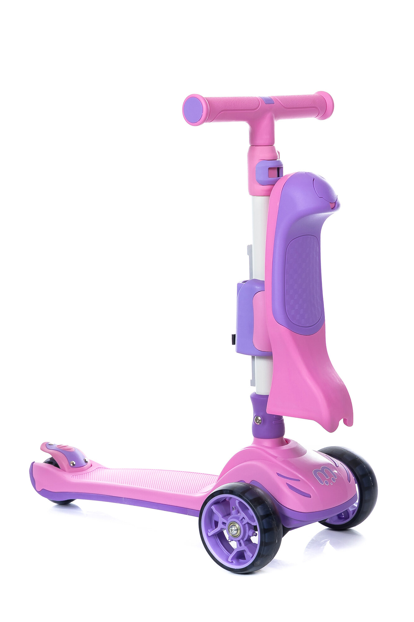 Купить Самокат-беговел 3 в 1 Scooter Micar Transformer складной со светящимися колесами, сиденьем и родительской ручкой розовый ONE SIZE