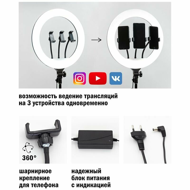 Светильник настольный кольцевой Artstyle TL-603B, 36Вт, LED, диммирование 10 уровней, штатив до 2,1м, USB-порт, блок питания (арт. 312862)