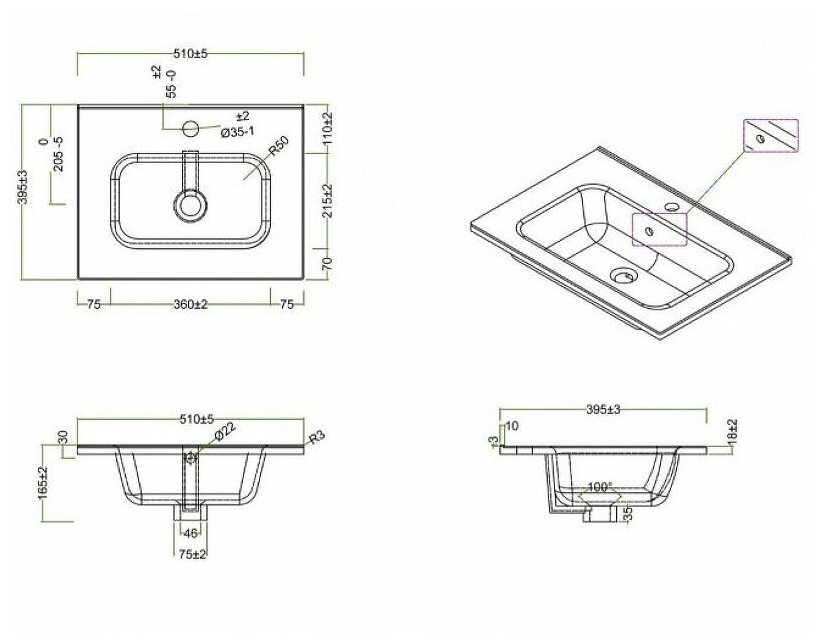 | Отверстия под смеситель | 1 |