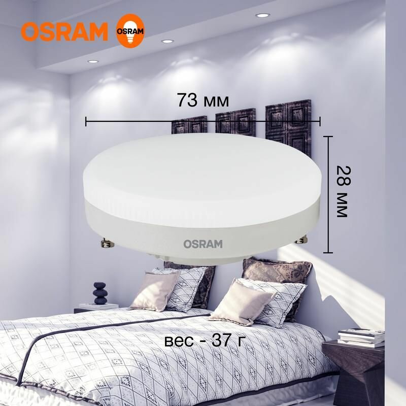 Лампочка светодиодная OSRAM LED Value GX, 960лм, 12Вт, 6500К (холодный белый свет), Цоколь GX53, колба GX
