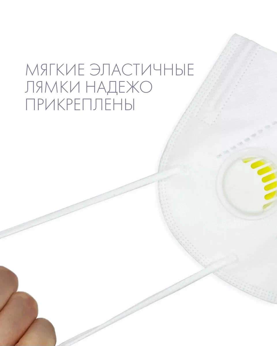 Универсальный респиратор с клапаном KN95 WHITE белого цвета, ГОСТ Р FFP2, 5 шт.
