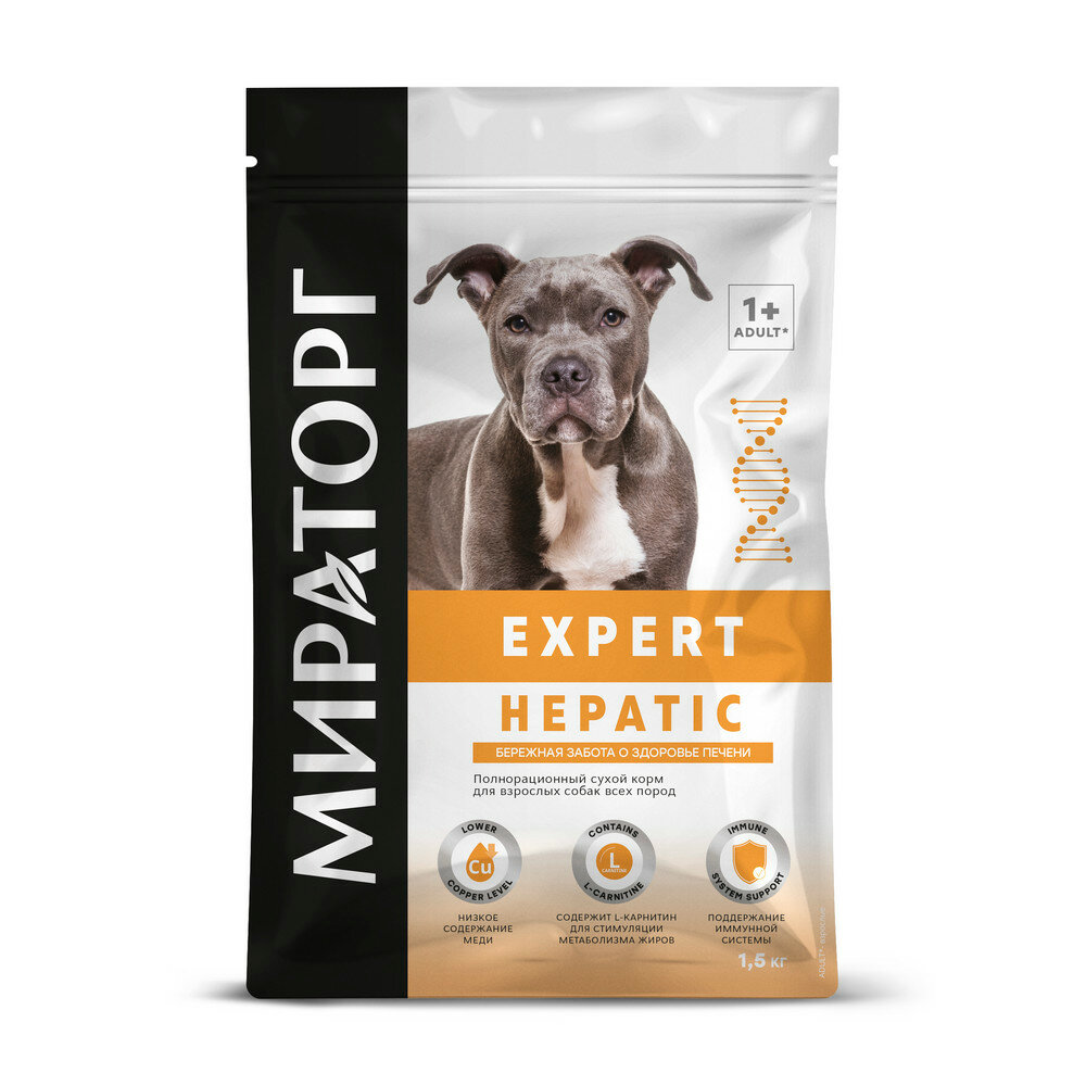 Мираторг Корм сухой для собак Expert Hepatic Бережная забота о здоровье печени, 1,5 кг