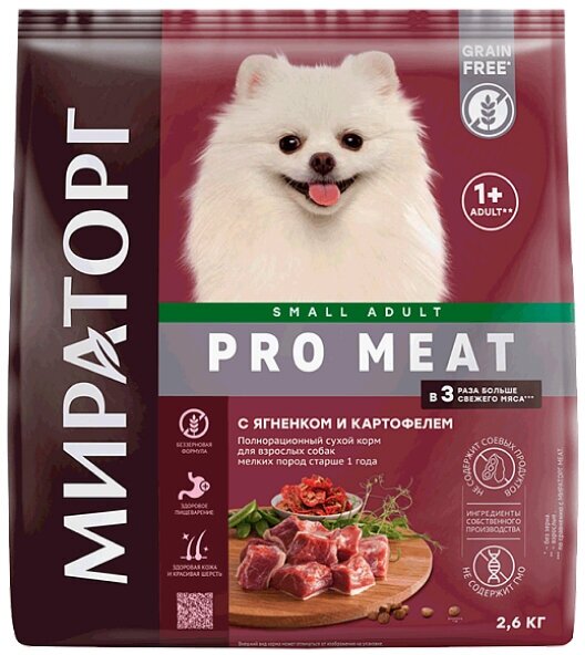 Мираторг PRO MEAT GRAIN FREE SMALL ADULT беззерновой для взрослых собак маленьких пород с ягненком и картофелем (2,6 кг)