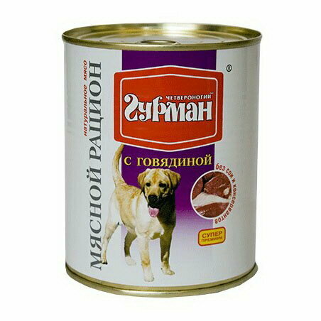 Четвероногий Гурман Консервы для собак Мясной рацион с говядиной 104113003 0,85 кг 54681