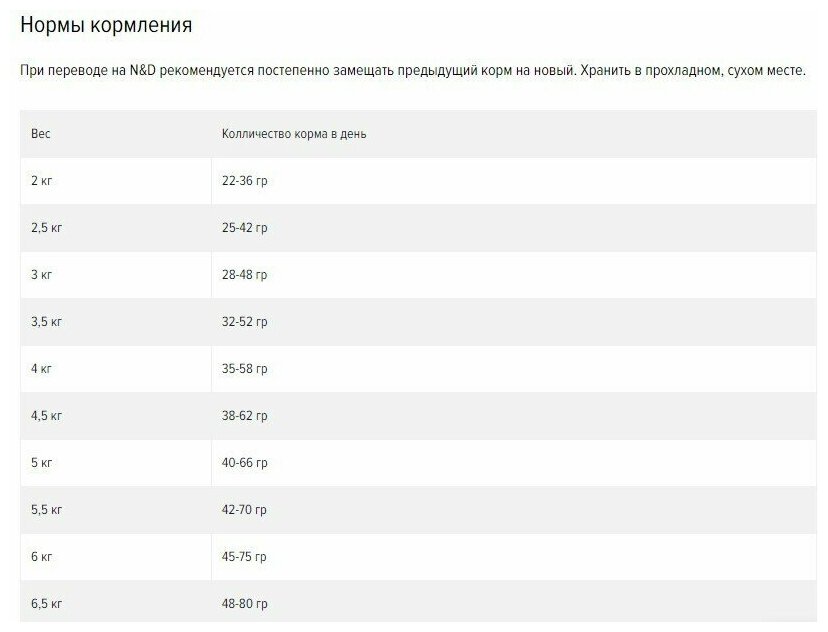 | Дозировка | - вес кошки 2 кг - 22-36 г - вес кошки 2.5 кг - 25-42 г - вес кошки 3 кг - 28-48 г - вес кошки 3.5 кг - 32-52 г - вес кошки 4 кг - 35-58 г - вес кошки 4.5 кг - 38-62 г - вес кошки 5 кг - 40-68 г - вес кошки 5.5 кг - 42-72 г - вес кошки 6 кг - 45-76 г - вес кошки 6.5 кг - 48-80 г |