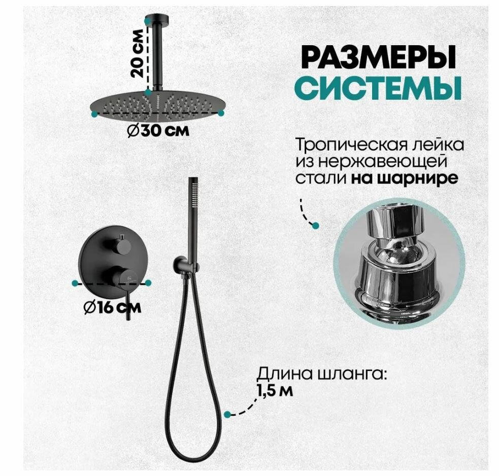 | Особенности | антиизвестковое покрытие / аэратор / держатель душевой лейки / регулируемый верхний душ |