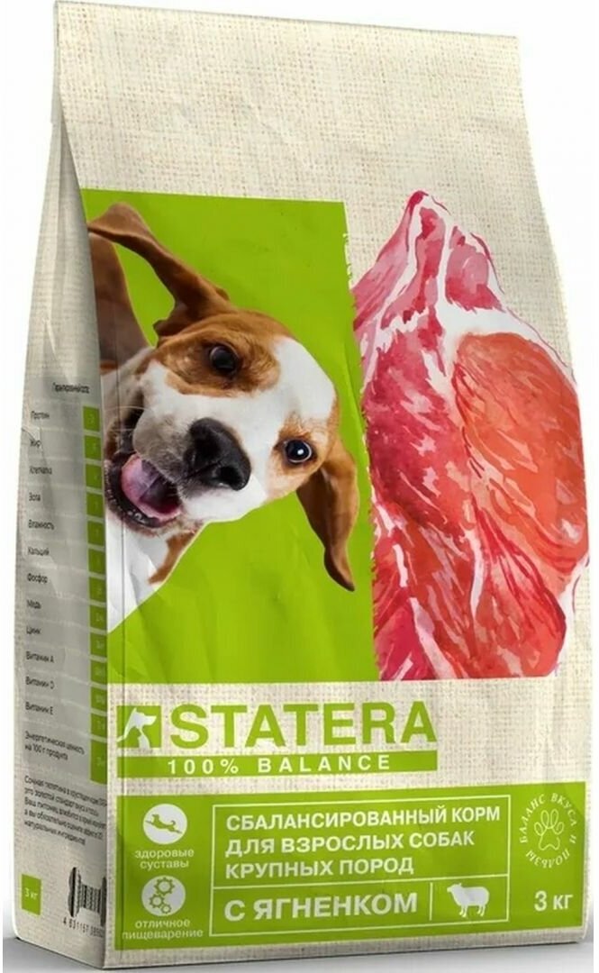 Statera - Сухой корм для взрослых собак крупных пород, с Ягненком (3 кг)