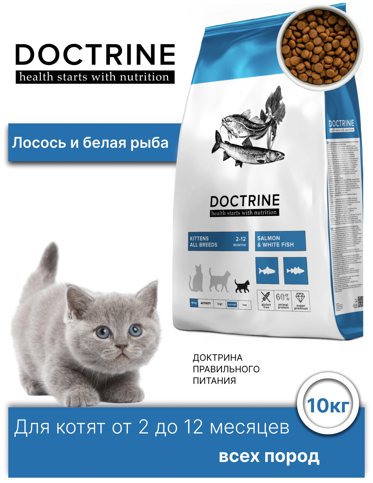Сухой корм для котят Беззерновой DOCTRINE с лососем и белой рыбой 10кг / доктрин, доктрина