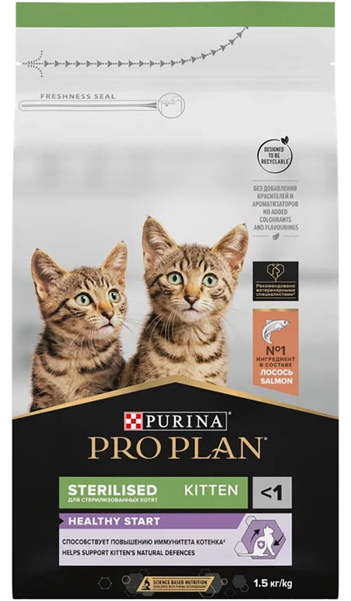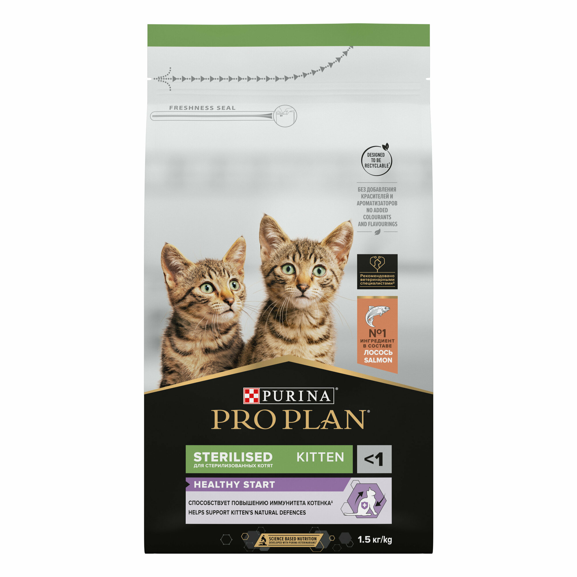 Сухой корм PRO PLAN HEALTHY START для стерилизованных котят от 3 до 12 месяцев, с высоким содержанием лосося 1.5 кг