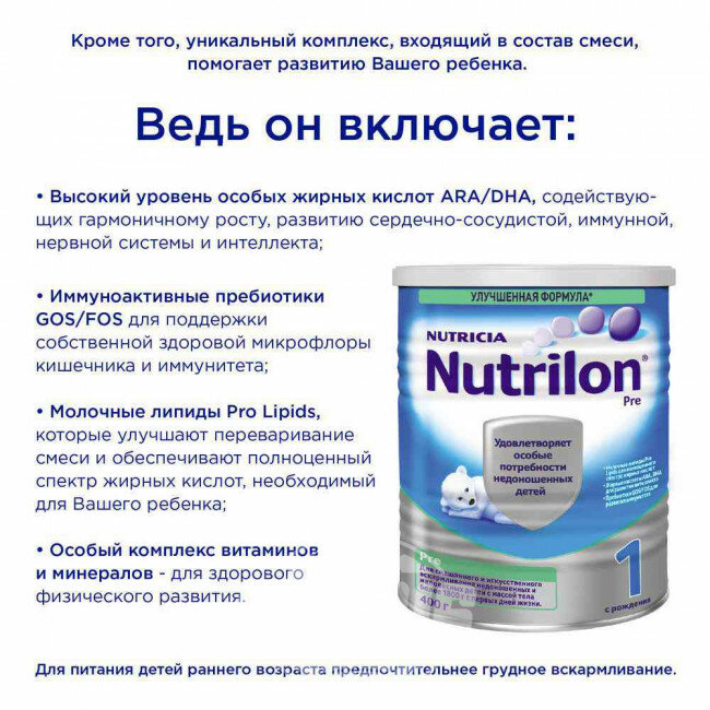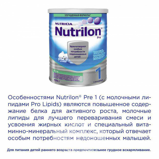Нутрилон ПРЕ-1 сух смесь 400г интересное: