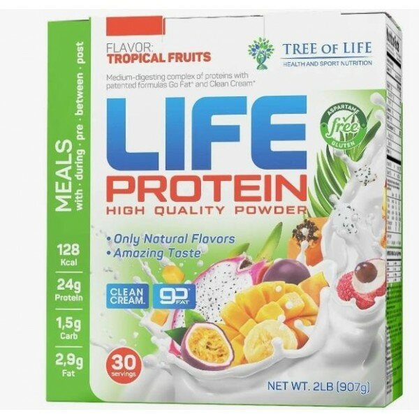 Купить LIFE Protein 907 gr, 30 порции(й), тропические фрукты
