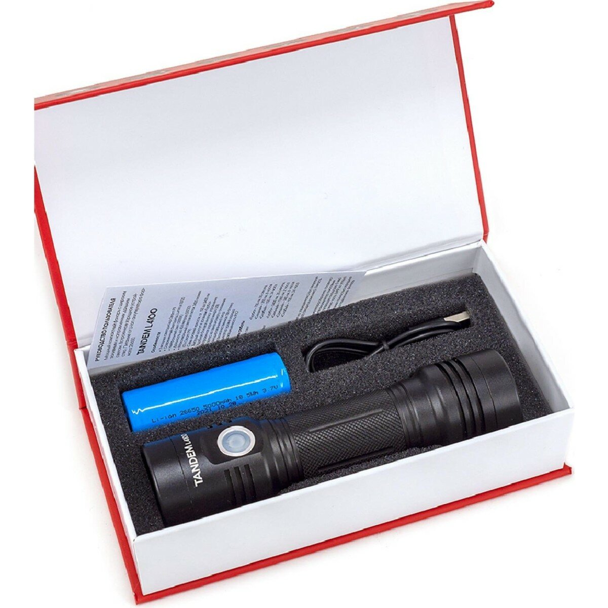 | Подробная комплектация | Фонарь / Аккумулятор 26650 5000 мАч / USB-кабель |