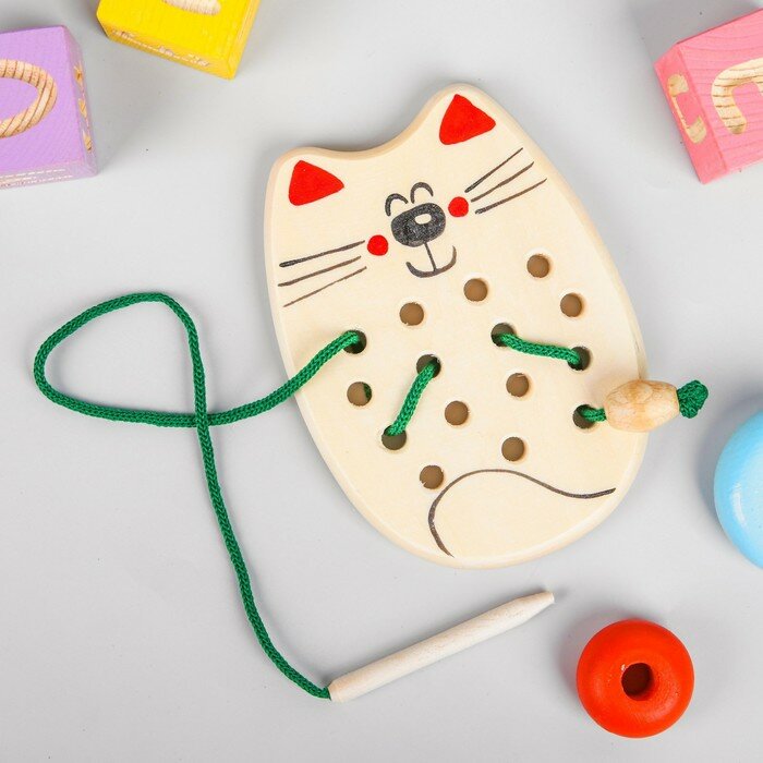 Развивающая деревянная игра-шнуровка "Кот", развитие мелкой моторики