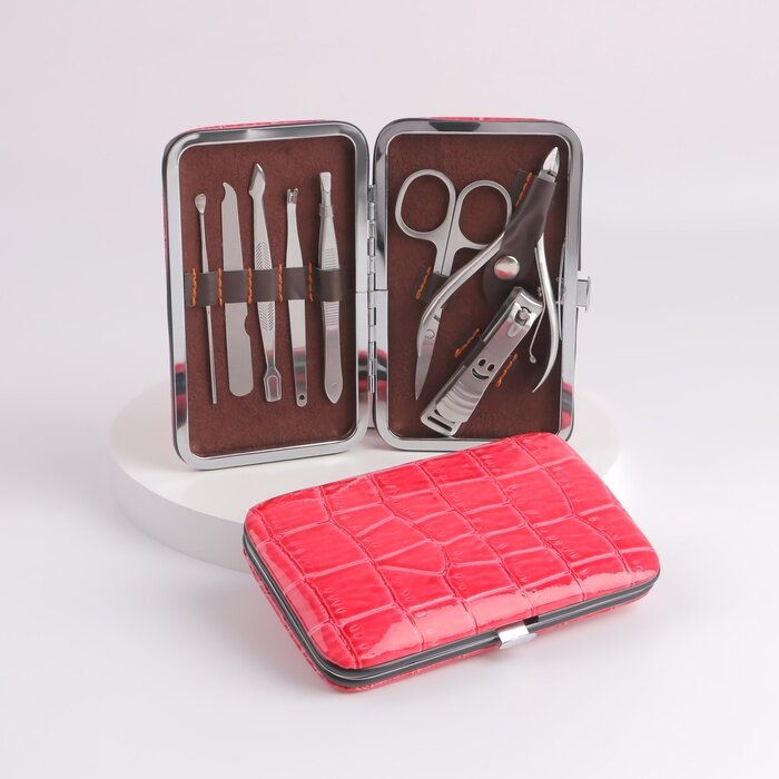 Набор маникюрный Рептилия, 8 предметов, цвет красный