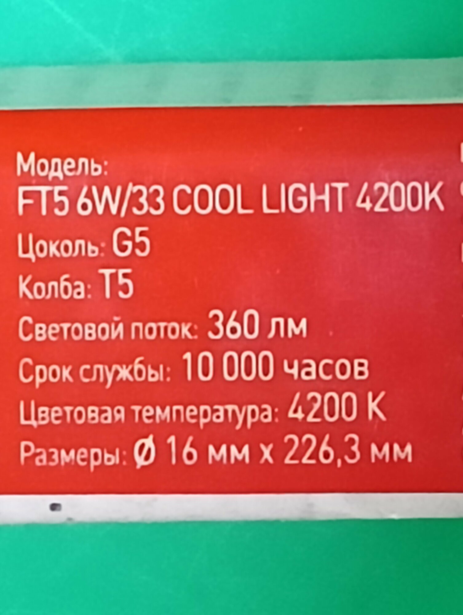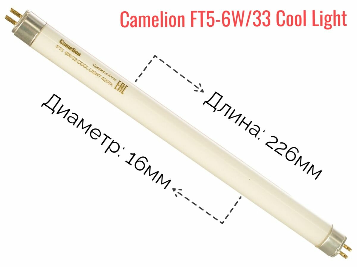 Люминесцентная лампа Camelion 6205 FT5-6W/33 G5 T5 6W 4200K 226мм интересное: