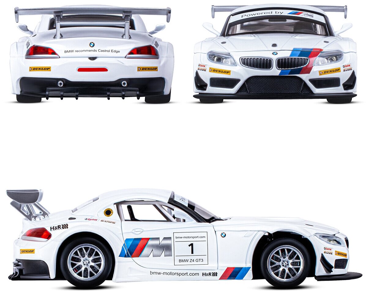 Купить Модель машины Автопанорама 1:24, BMW Z4 GT3, белый, свободный ход колес, открываются двери, капот, свет, звук