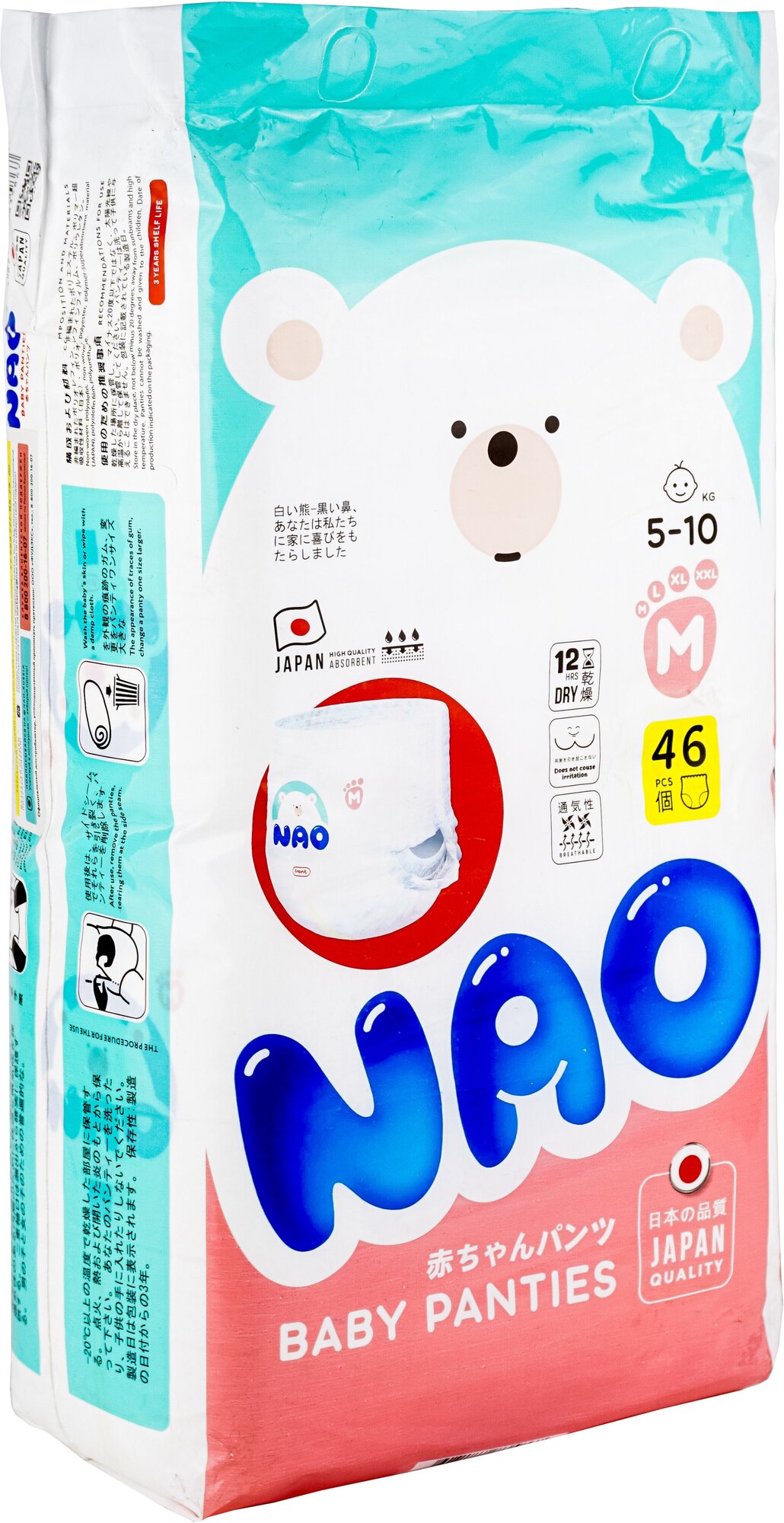 Купить Подгузники-трусики NAO, памперсы, размер М (5-10кг), 50 шт