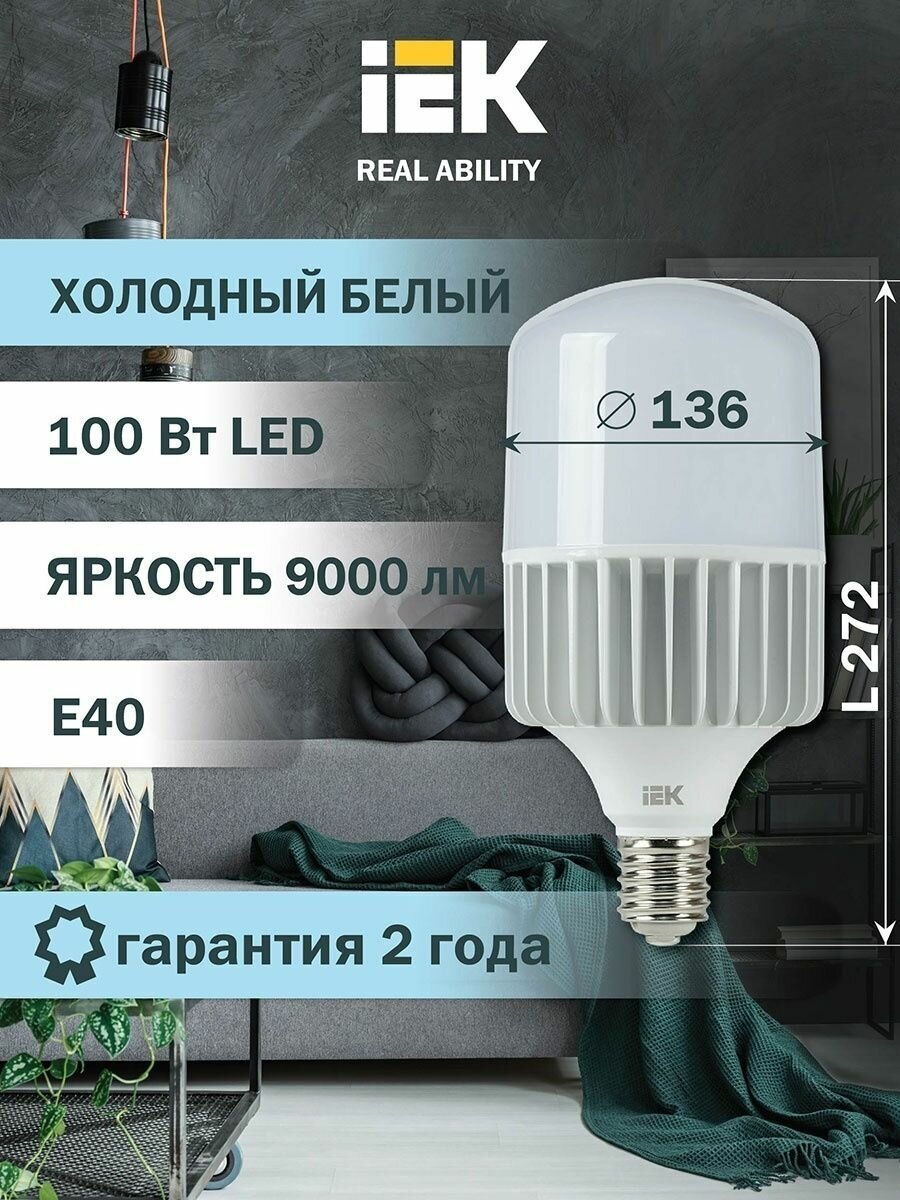 Лампа светодиодная HP 100Вт 230В 6500К E40 IEK LLE-HP-100-230-65-E40 (1 шт.)