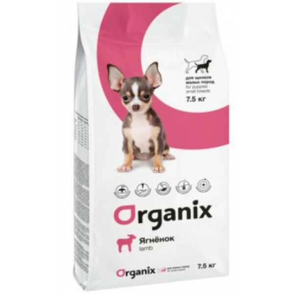 Сухой корм Organix для щенков малых пород с ягненком, 7,5 кг
