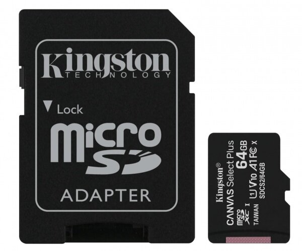 Карта памяти Kingston Canvas Select Plus 64Гб microSDXC, C10/UHS-I U1 (SDCS2/64GBSP)