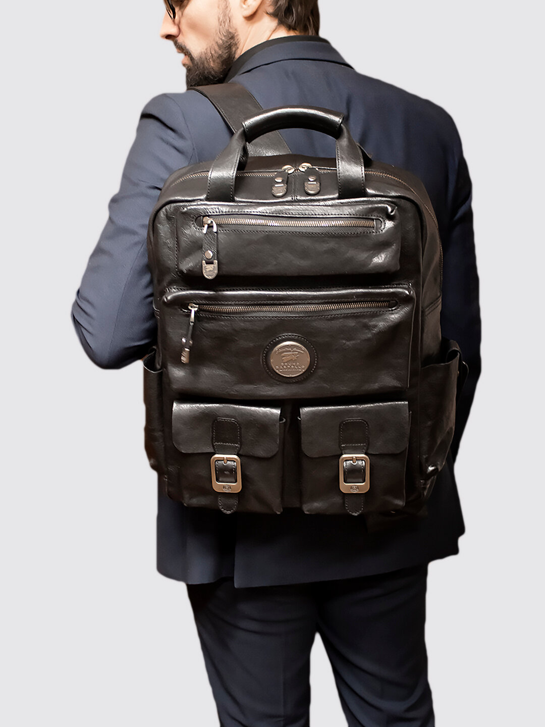 Рюкзак мужской кожаный R-0009 Bruno Bartello черный, сумка рюкзак через плечо (Италия) интересное: