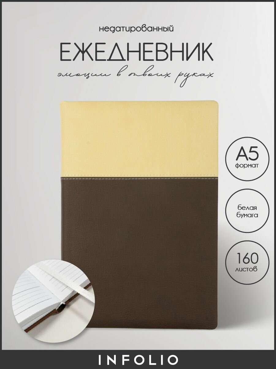 Ежедневник INFOLIO Patchwork недатированный, искусственная кожа, А5, 160 листов, коричневый