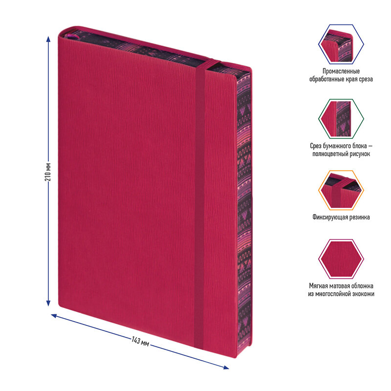 Ежедневник недатир. В6, 160л., кожзам, Berlingo Spring, фуксия, полноцветный срез