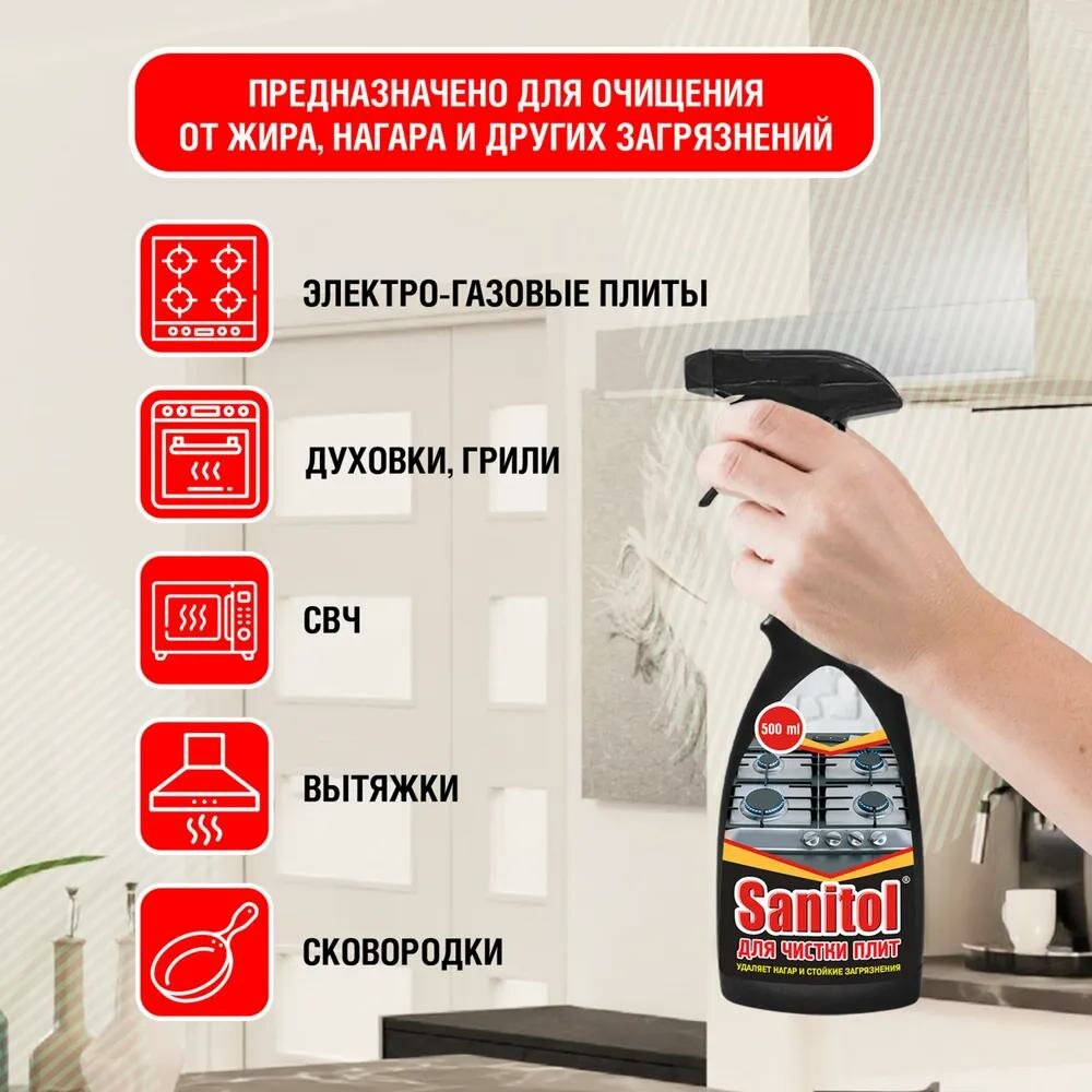 Чистящее средство Sanitol Для плит, с распылителем, 500 мл (ЧС-021)