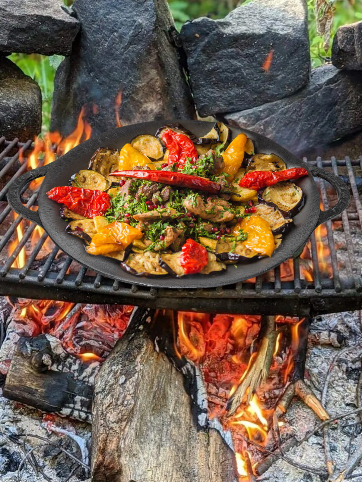 Чугунный садж для мангала сковородка жаровня Наманган, черный, 45 см