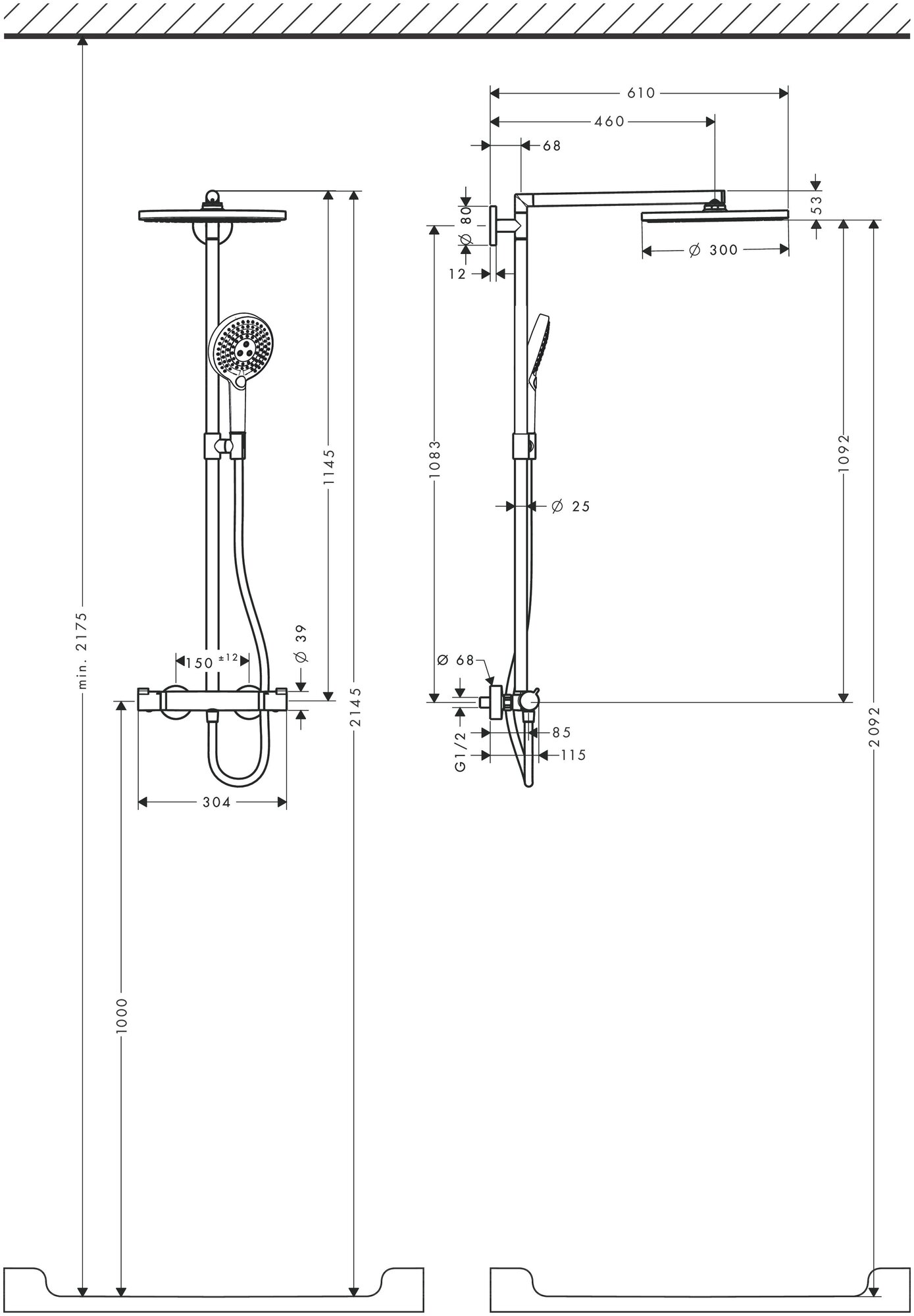 | Дополнительная информация | высота стойки для душа: 1145 мм; диаметр душевой лейки: 150 мм; диаметр верхнего душа: 300 мм |