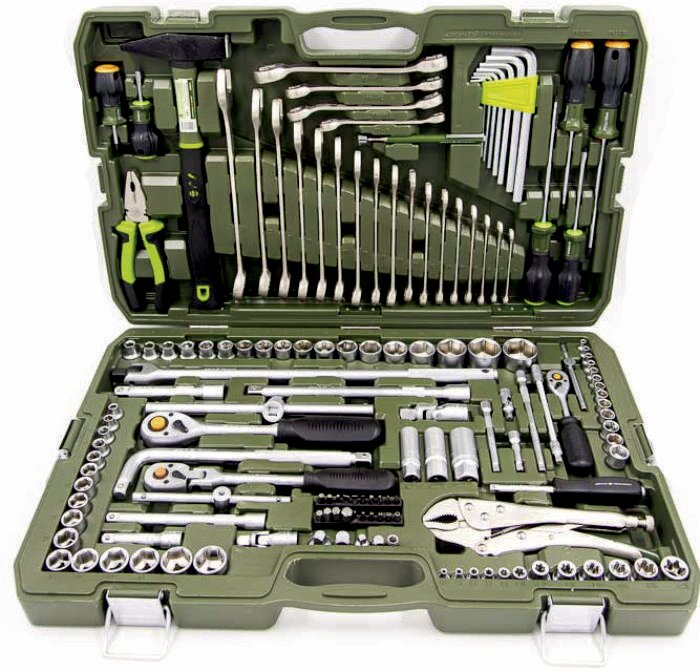 | Гаечные ключи подробно | комбинированные ключи: 6, 7, 8, 9, 10, 11, 12, 13, 14, 15, 16, 17, 18, 19, 21, 22, 24 мм; разрезные ключи: 8x10, 11x13, 12x14, 17x19 мм; |