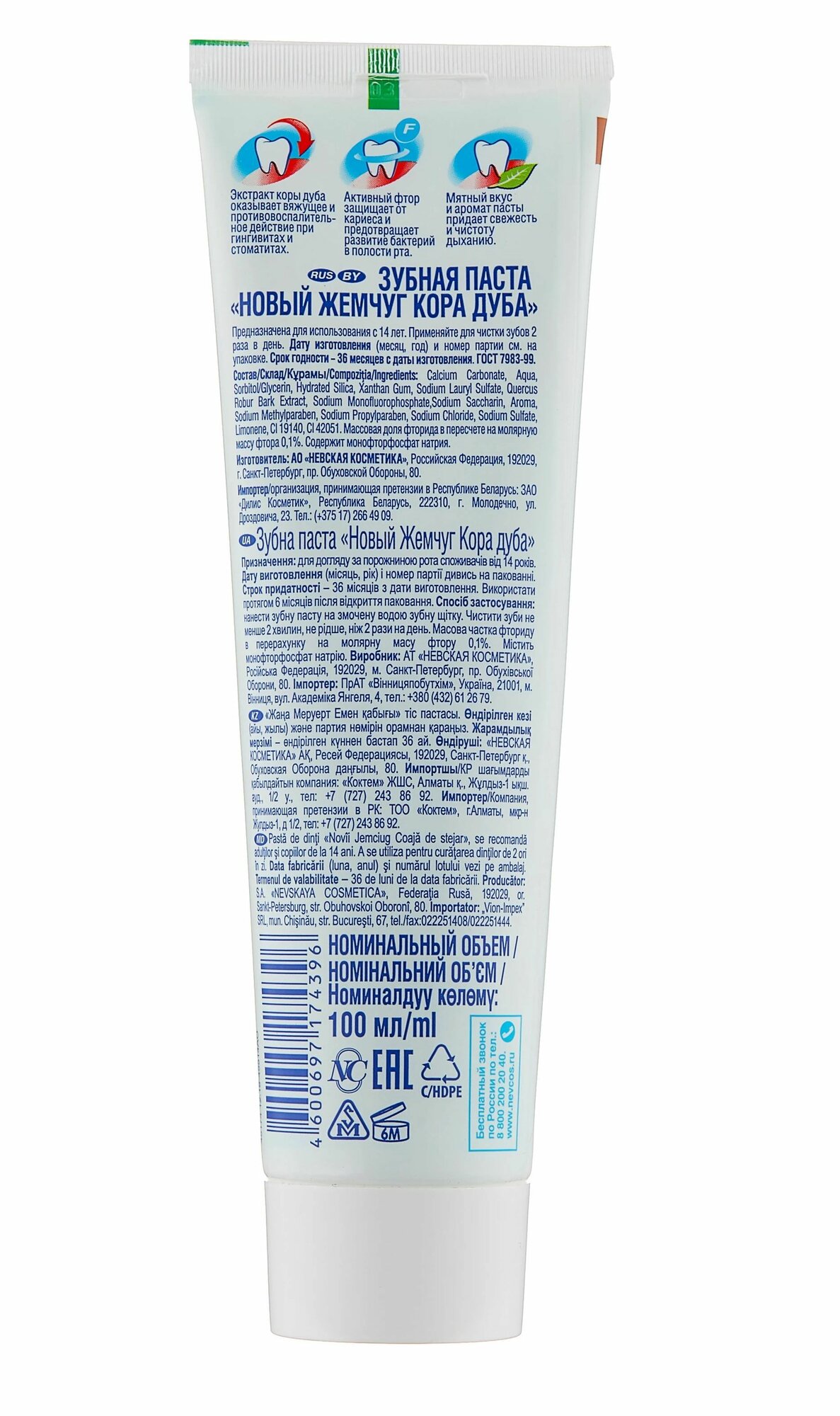Зубная паста «Новый жемчуг»» кора дуба, 100 мл, "Невская косметика"