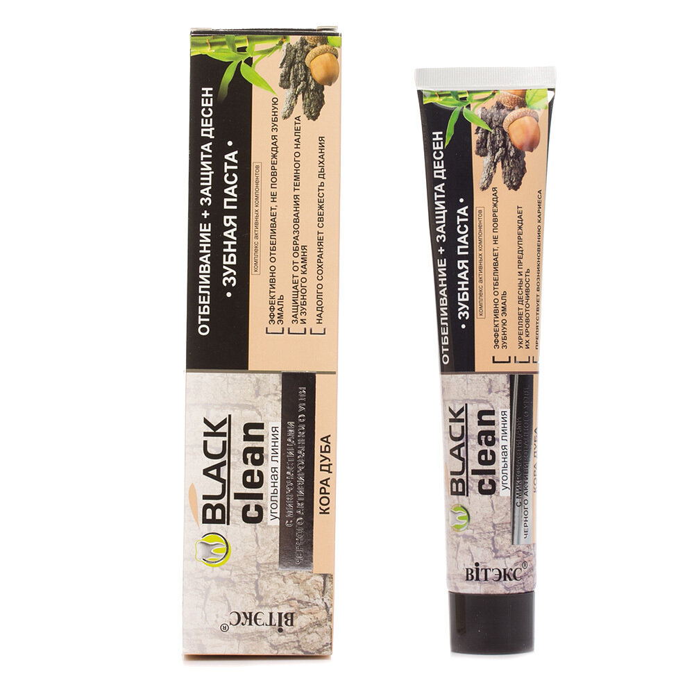 Витэкс Зубная паста Black clean Отбеливание + Защита десен, с микрочастицами черного активированного угля и корой дуба, 85 г