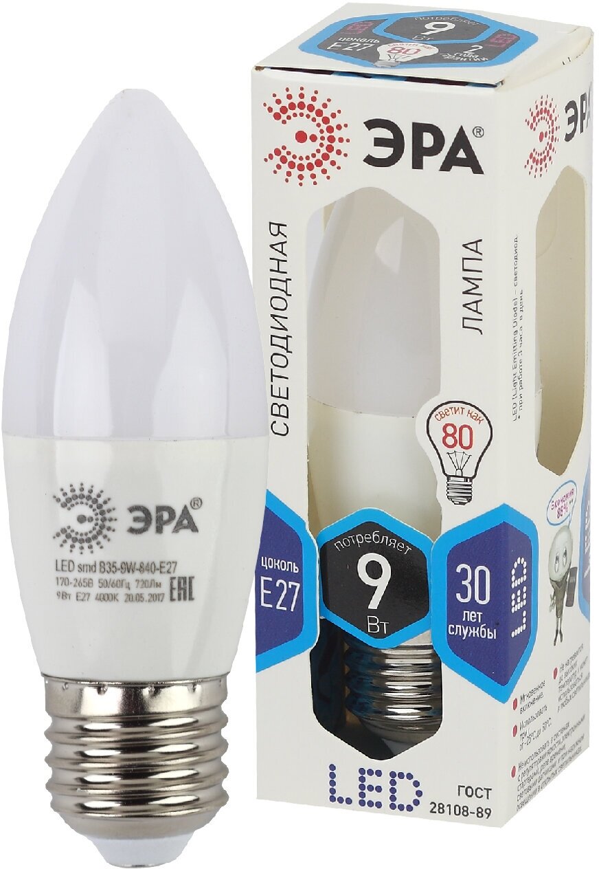 Купить Лампа светодиодная ЭРА STD LED B35-9W-840-E27 E27 / Е27 9Вт нейтрал. свeт