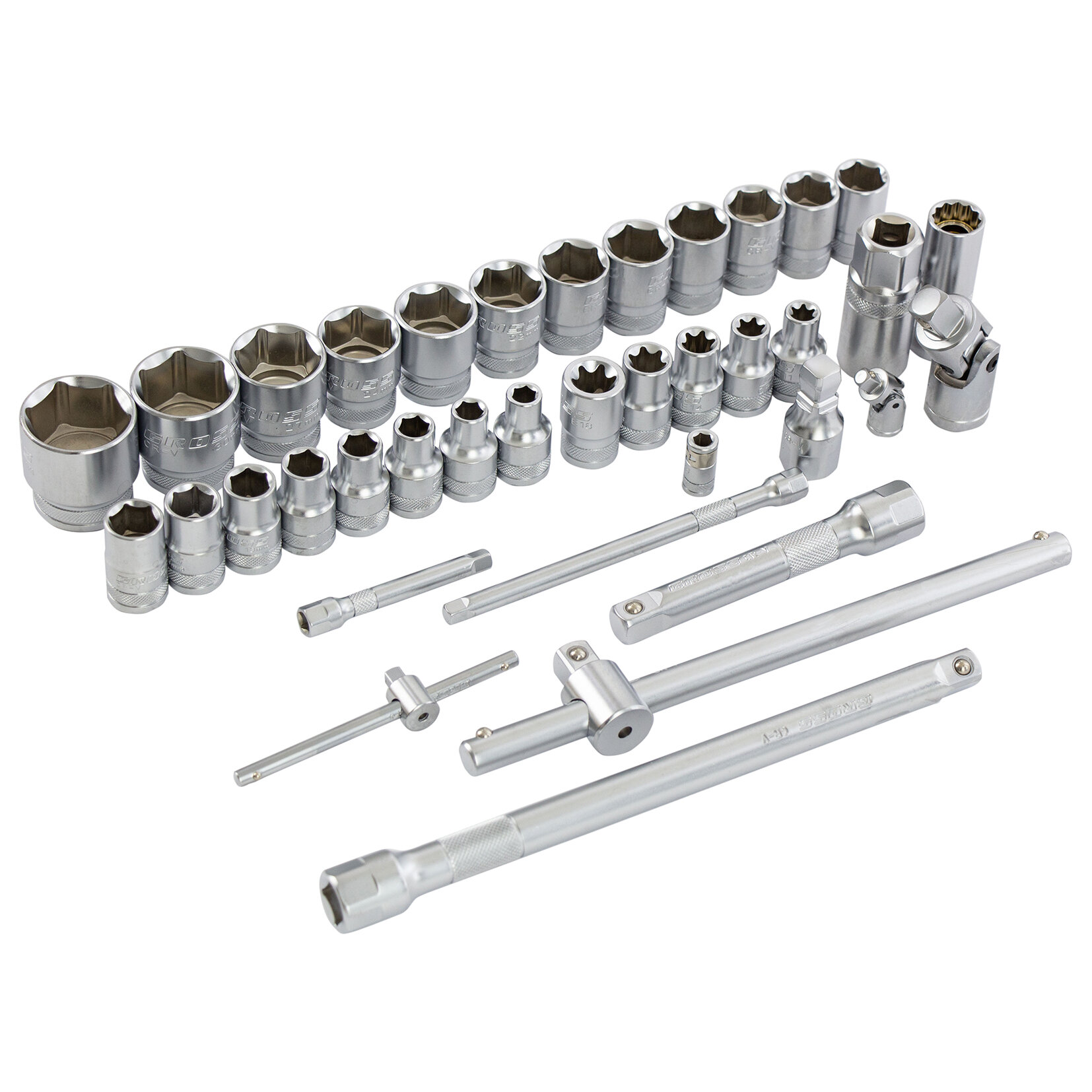 | Головки торцевые подробно | Головки торцевые 1/2" (12,7 мм) шестигранные: 8; 9; 10; 11; 12; 13; 14; 15; 16; 17; 18; 19; 20; 21; 22; 23; 24; 27; 30; 32. Головки торцевые 1/2" (12,7 мм), E: E 11; 12 ; 14; 16; 18. Головки торцевые 1/4" (6,35 мм), шестигранные: 4; 4,5; 5; 5,5; 6; 7; 8; 9; 10. Головки торцевые 1/4" (6,35 мм), E: E 4; 5; 6; 7; 8; 10. |