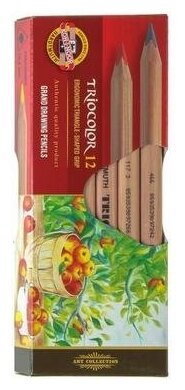 Карандаши цветные KOH-I-NOOR утолщенные "Triocolor", 12 цветов, трехгранные, 5,6 мм, заточенные (3152012001KS)