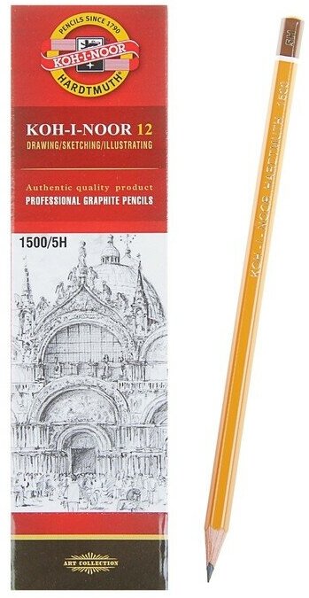 Карандаш чернографитный KOH-I-NOOR 1500, 1 штука, 5H, без резинки, корпус желтый, заточенный (150005H01170)