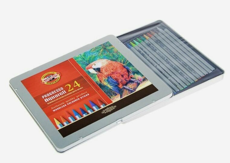 Карандаши акварельные Koh-I-Noor "Progresso", 24 цв., заточен., в лаке, без дерева, метал. пенал. (арт. 298315)