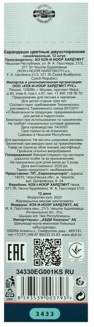 Карандаш двухсторонний KOH-I-NOOR 3433 син+красн, корп. желт. 34330EG001KSRU