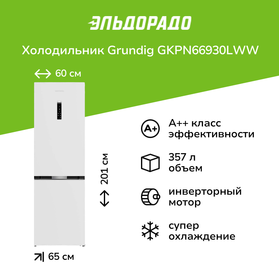 Холодильник Grundig GKPN66930LWW интересное: