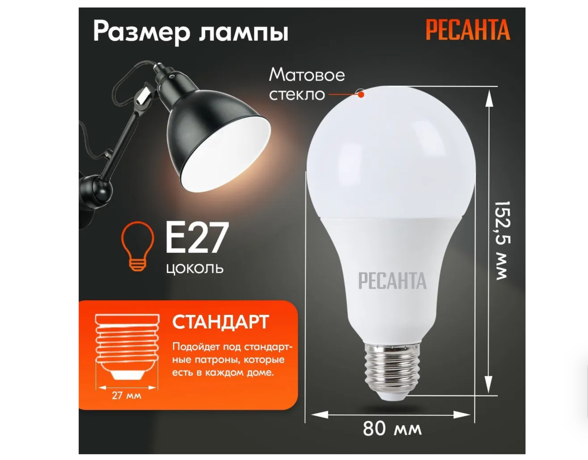 СохранитьЛампа светодиодная LL-R-A80-20W-230-4K-E27 (груша20Втнейтр.Е27) Ресанта интересное: