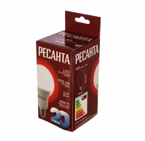 Лампа светодиодная РЕСАНТА LL-R-A80-20W-230-4K-E27 76/1/22