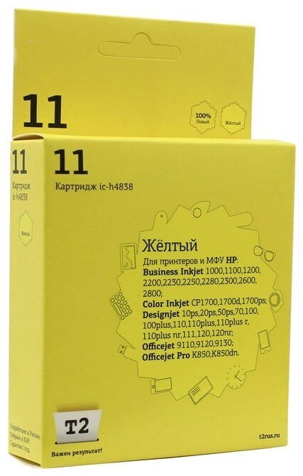 T2 C4838a Картридж 11 (ic-h4838) для HP Business InkJet 1200/2200/2600/2800/CP1700/Pro K850, жёлт .