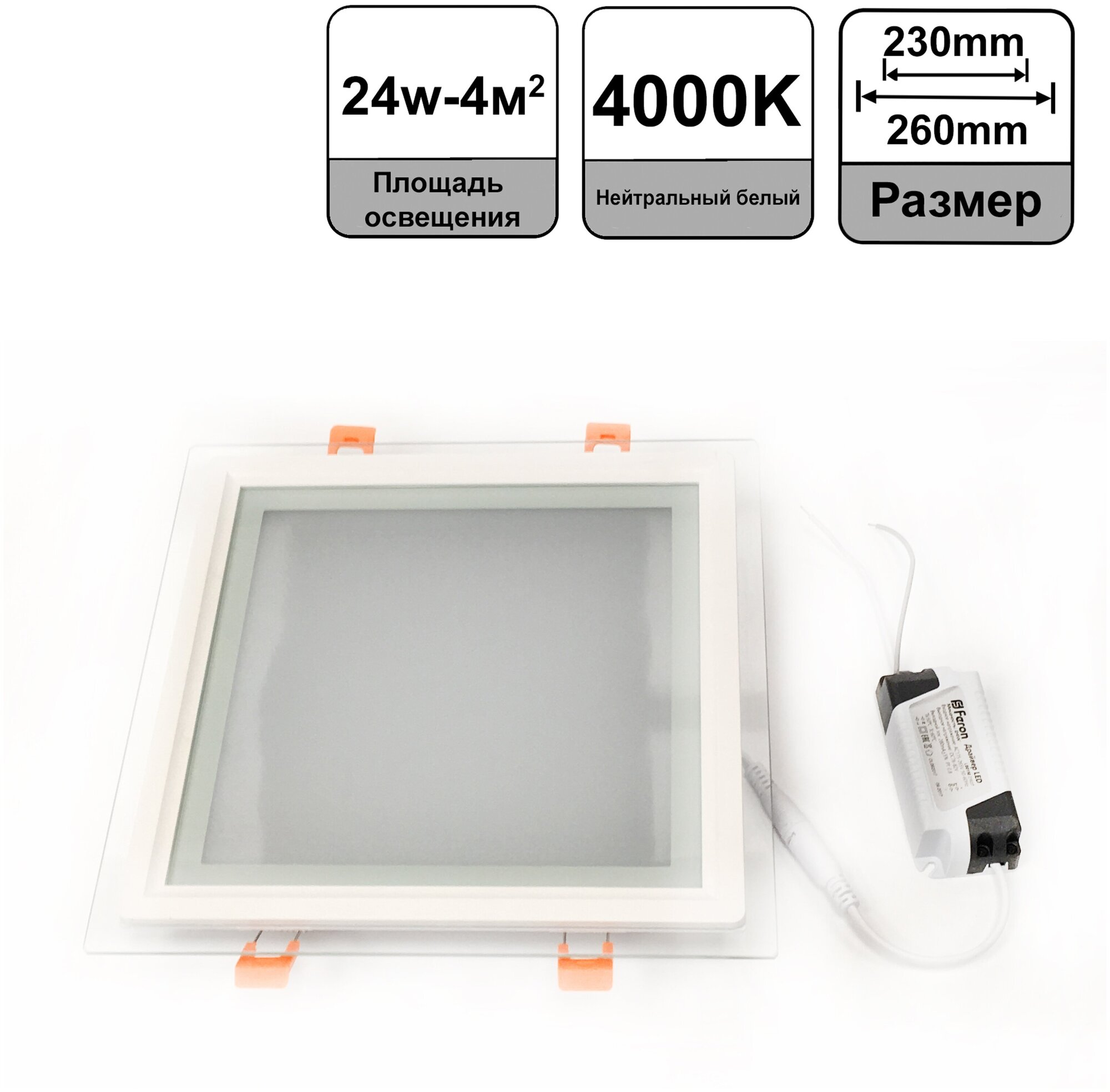 Светильник встраиваемый светодиодный 24W, 1640Lm, 4000K, белый, AL2111 с драйвером в комплекте арт. 28944